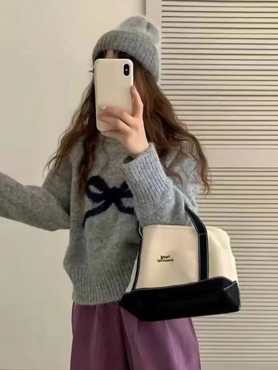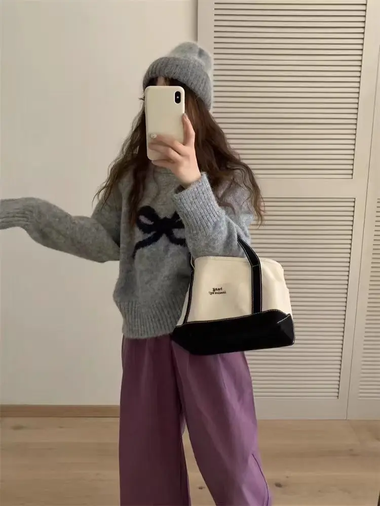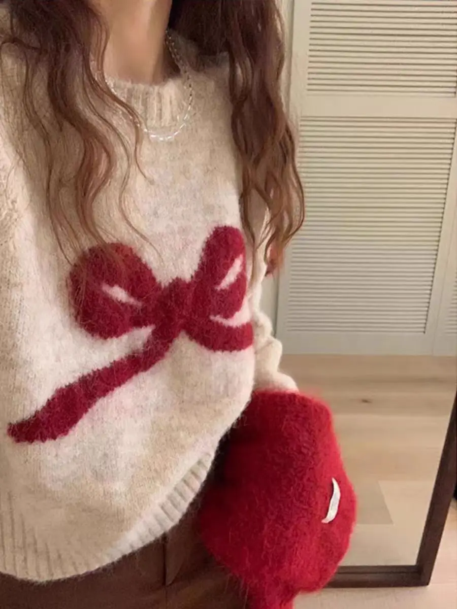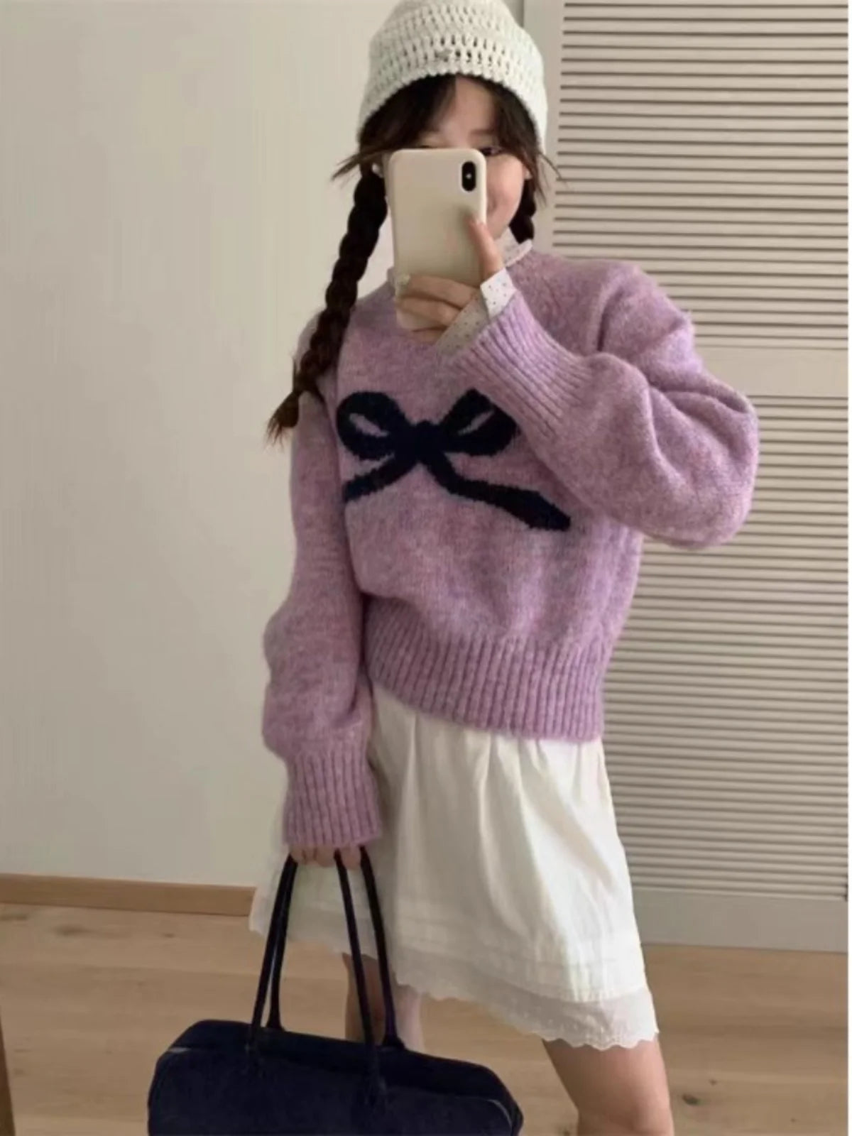 This spring/autumn new style sweet and age-reducing pullover knitwear features a charming butterfly knot, making it a perfect choice for those who want to add a touch of femininity to their wardrobe.