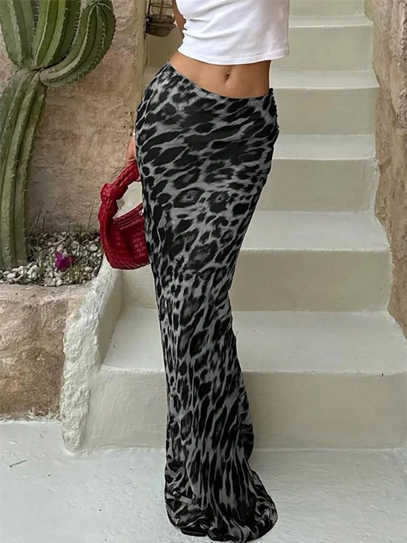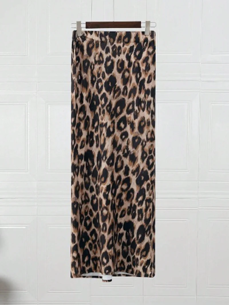 Donna Leopard Print Slim-Fit Package Hip Skirt Floor-Length Skirt