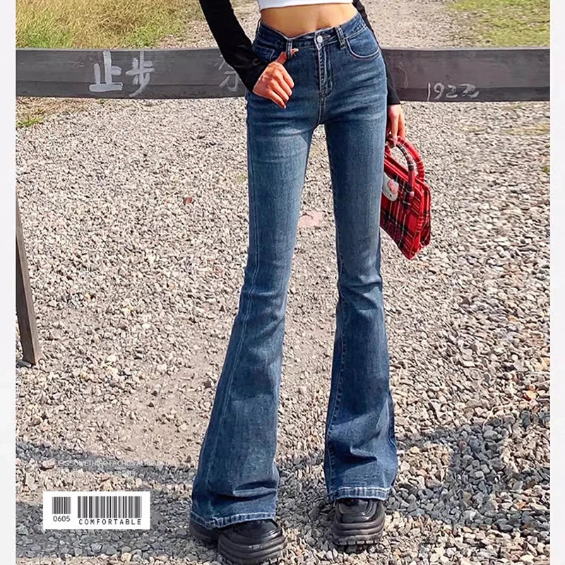 Elastic High Waist Bell Bottom Jeans