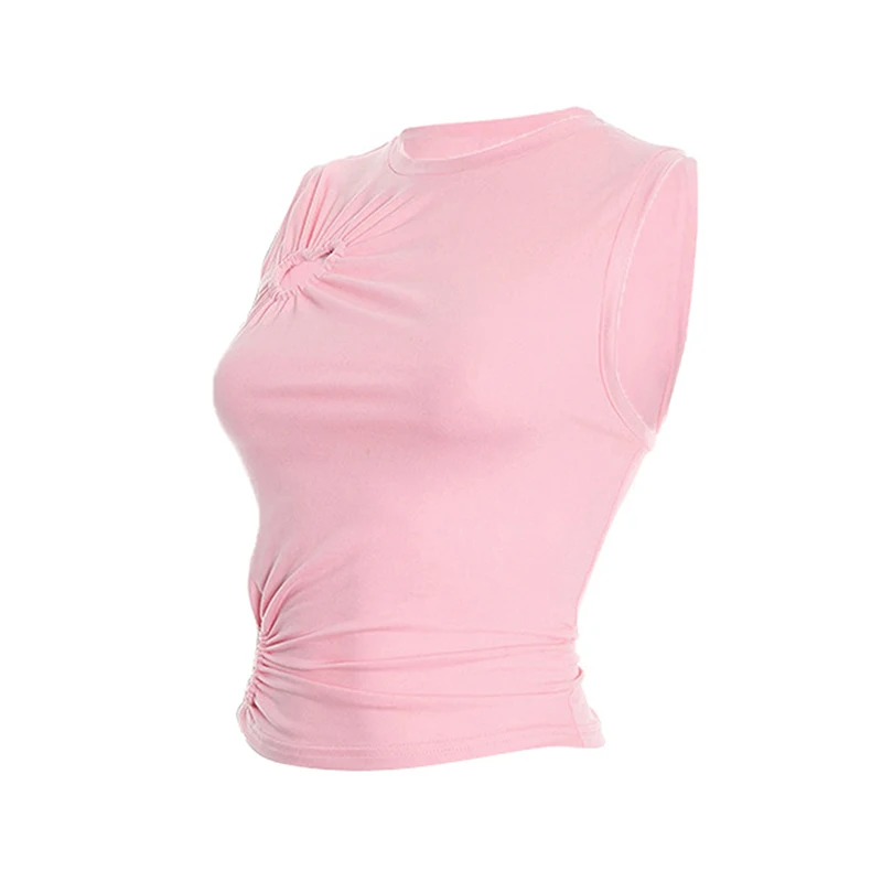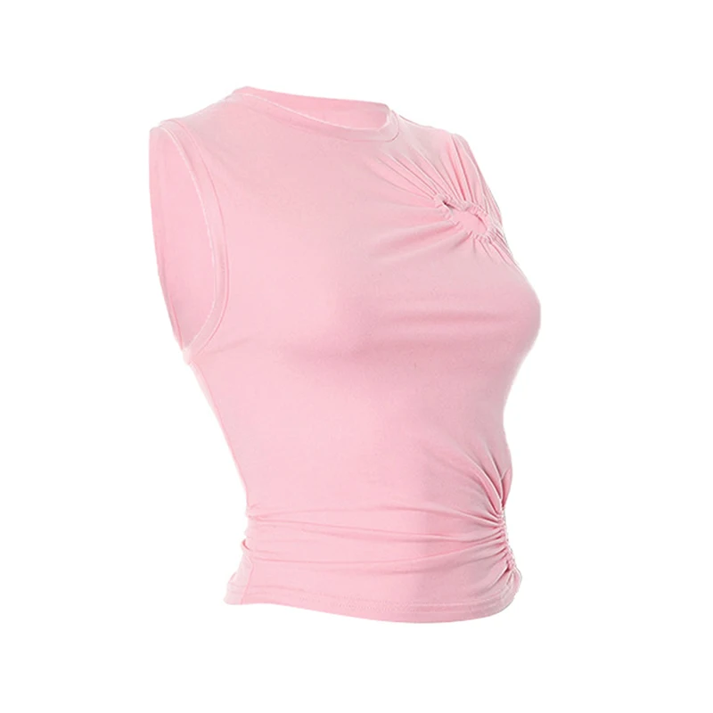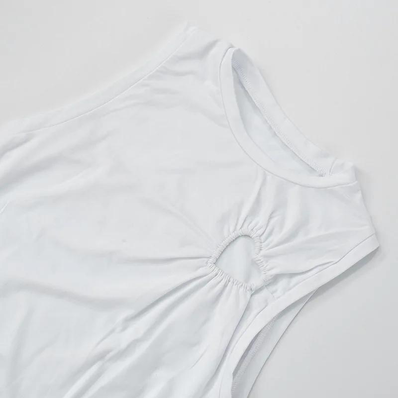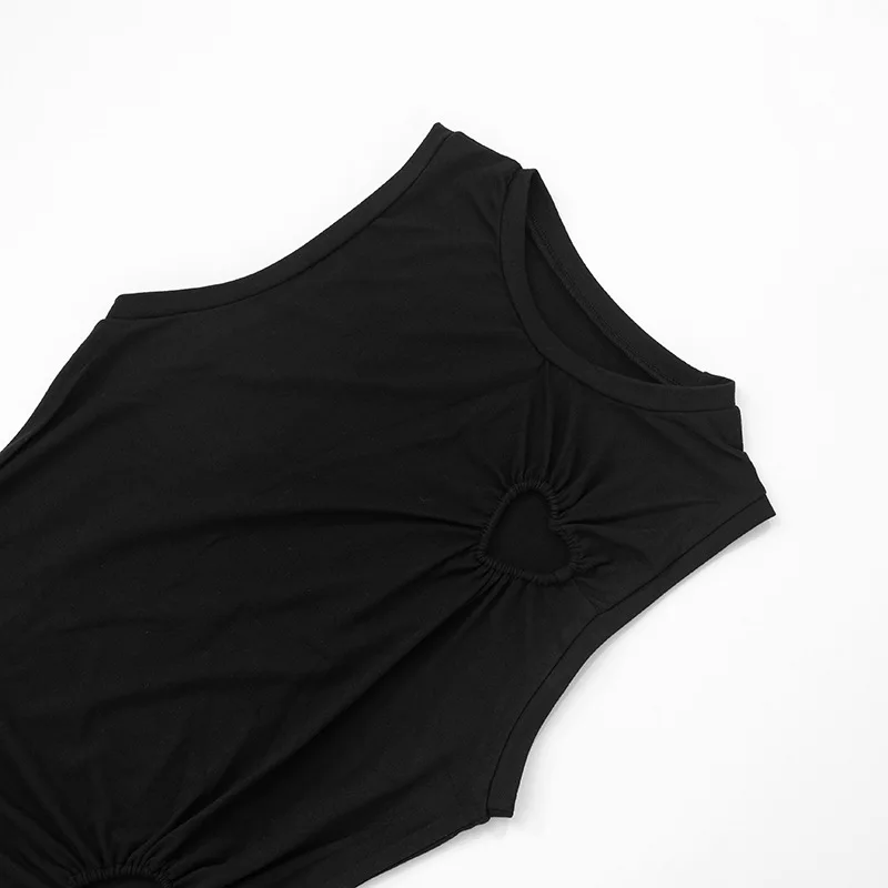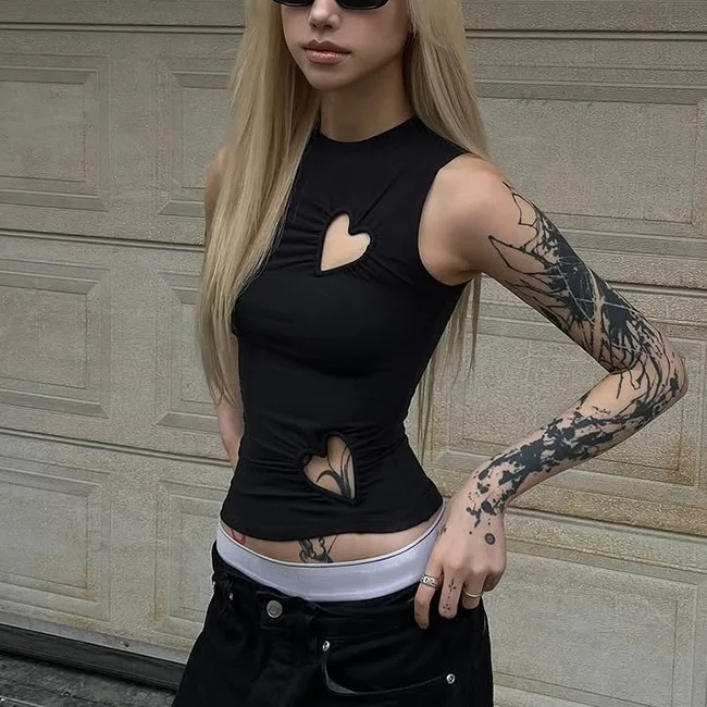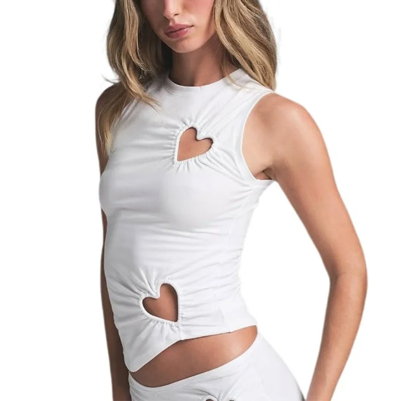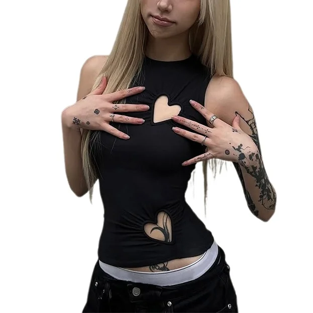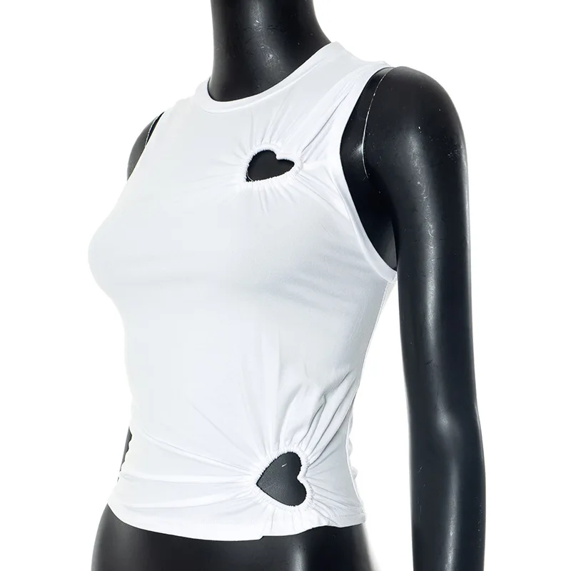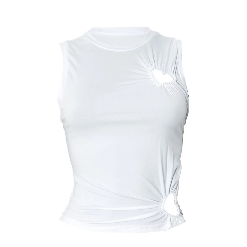Hollow Out Love Heart Round Neck Sleeveless Top