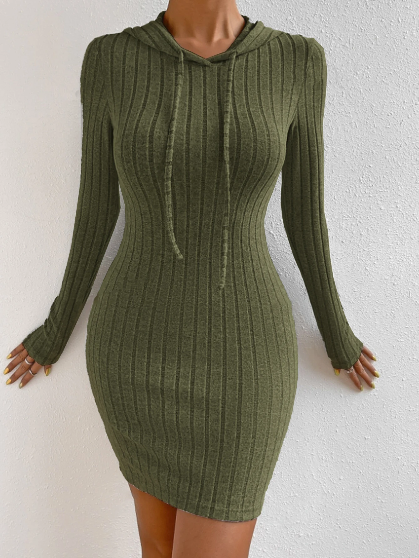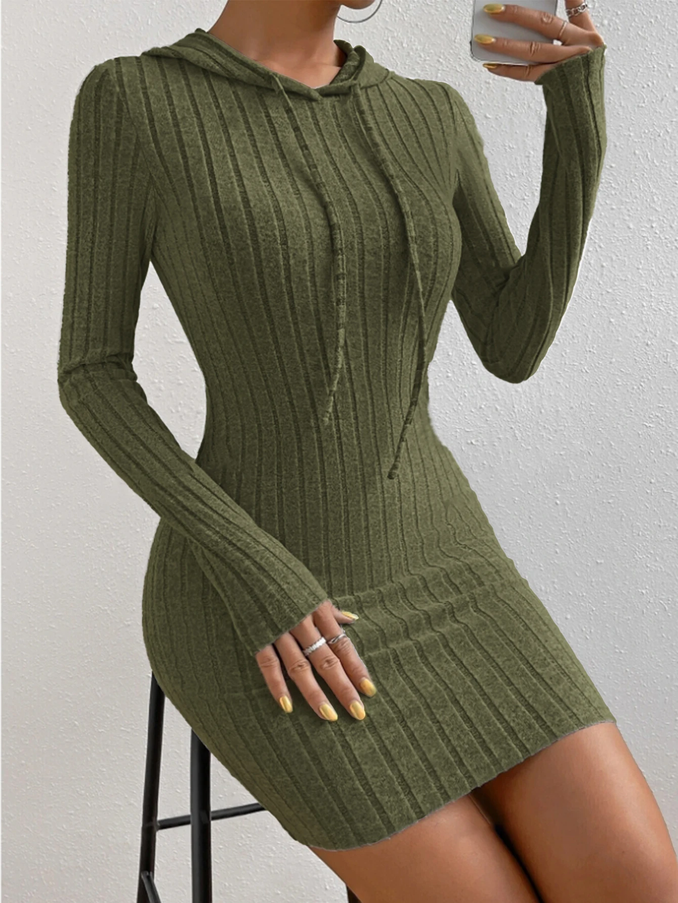 With its plain hooded design and drawstring, this dress transitions seamlessly from casual to chic, perfect for various occasions.