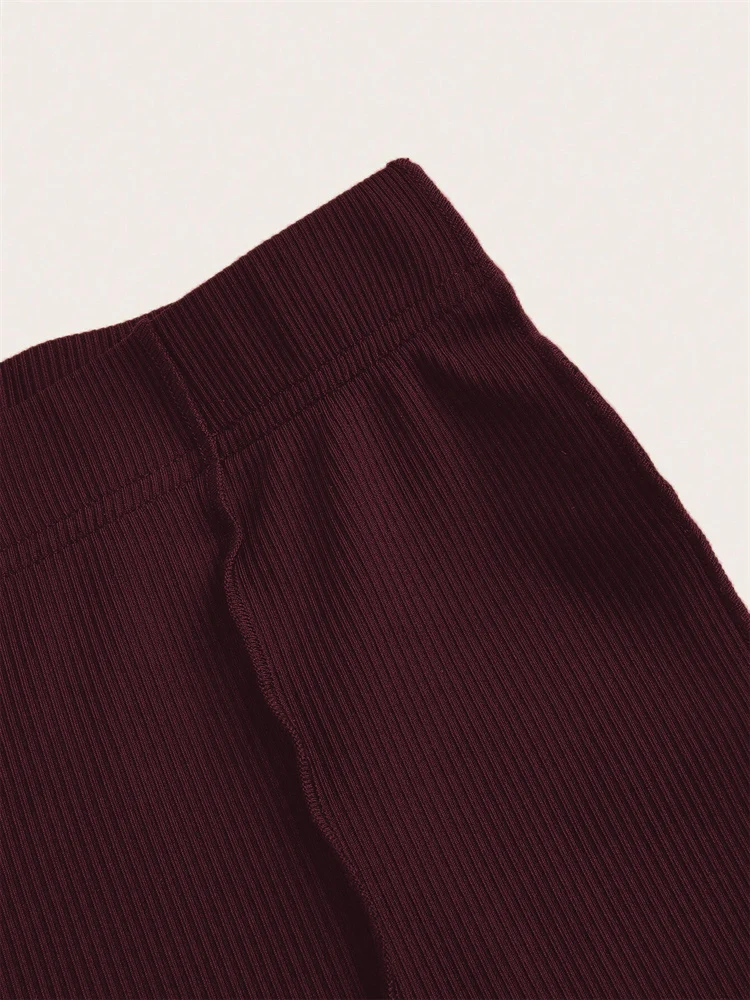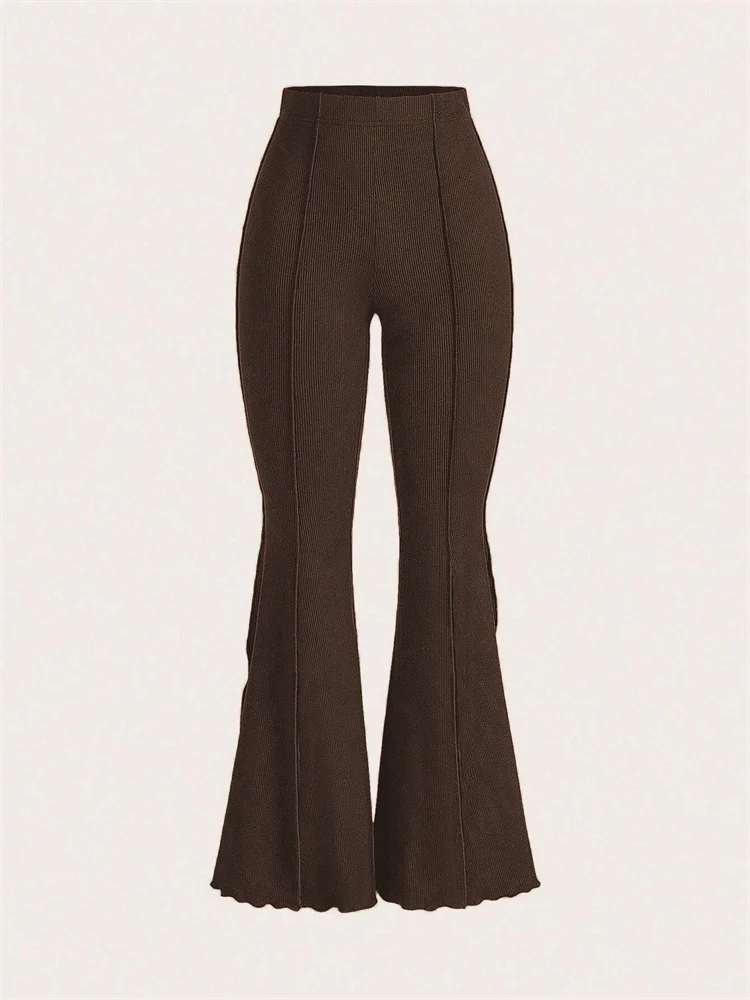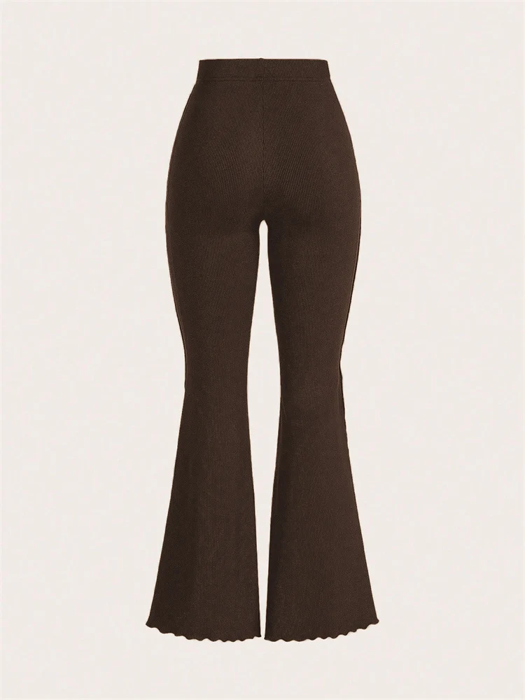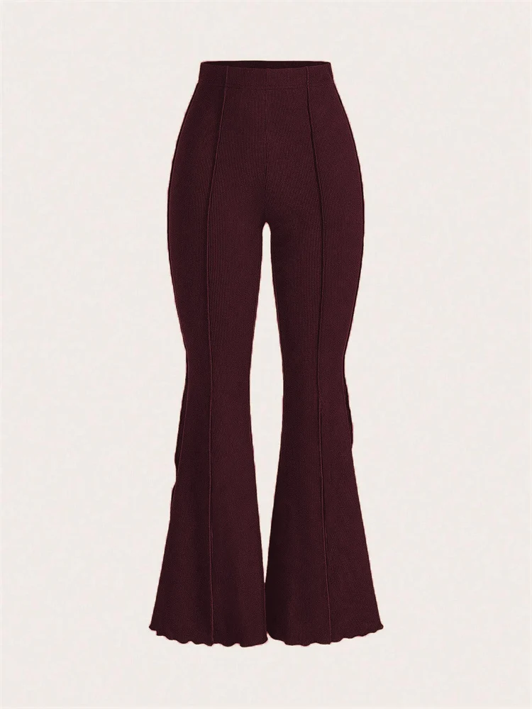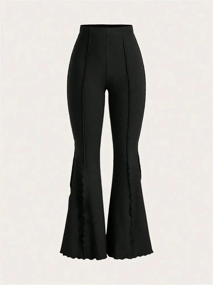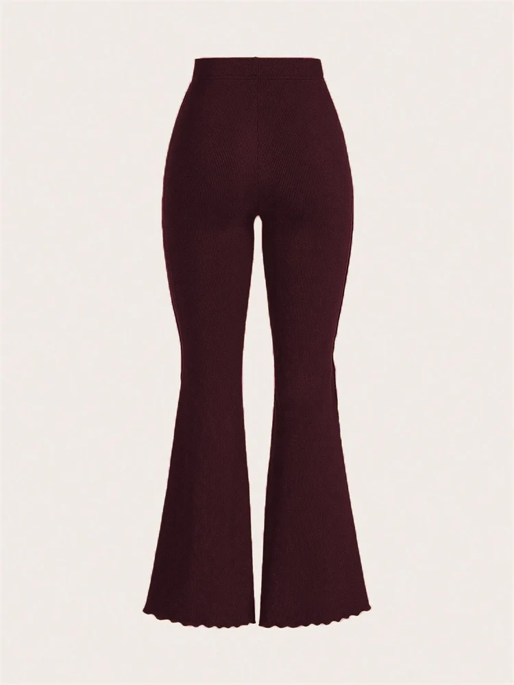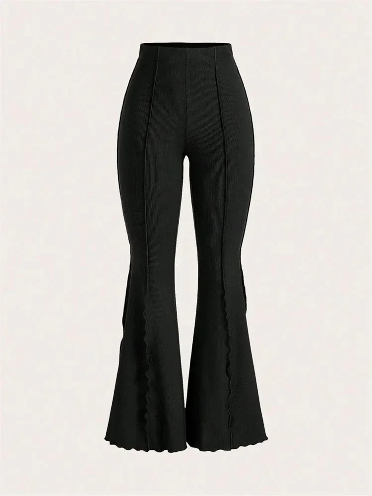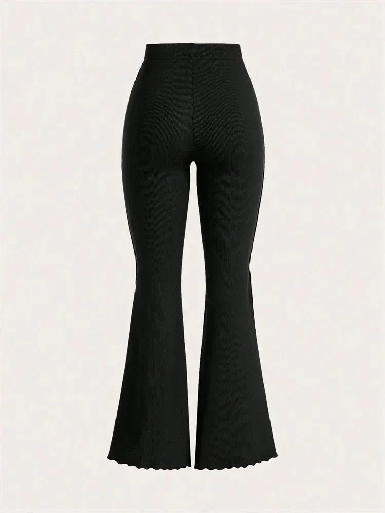 Lettuce Trim Casual Rib-knit Elastic Flared Pants