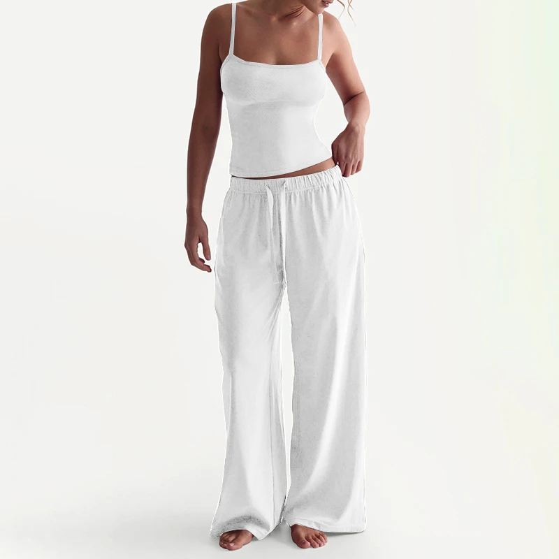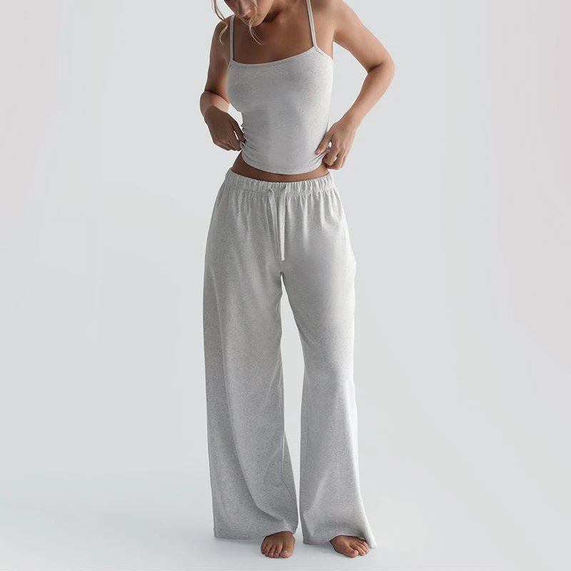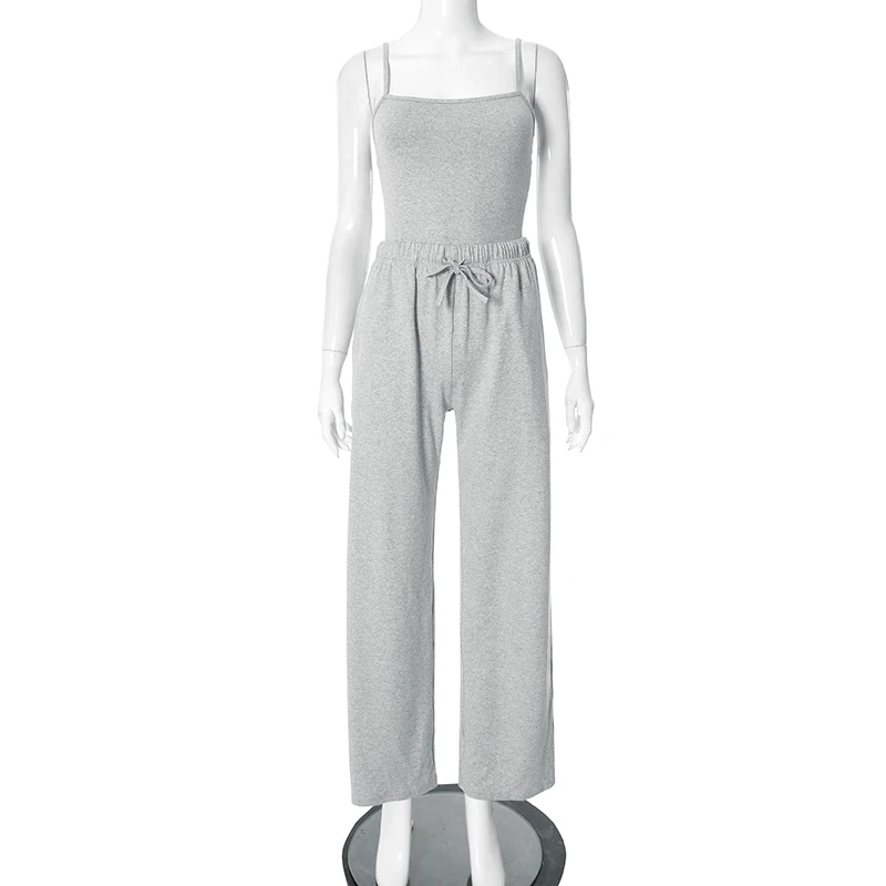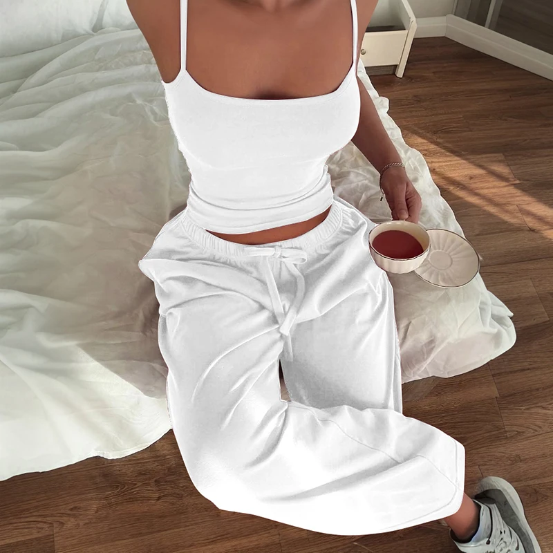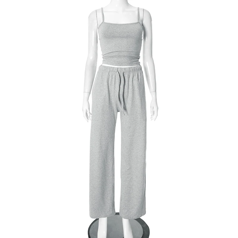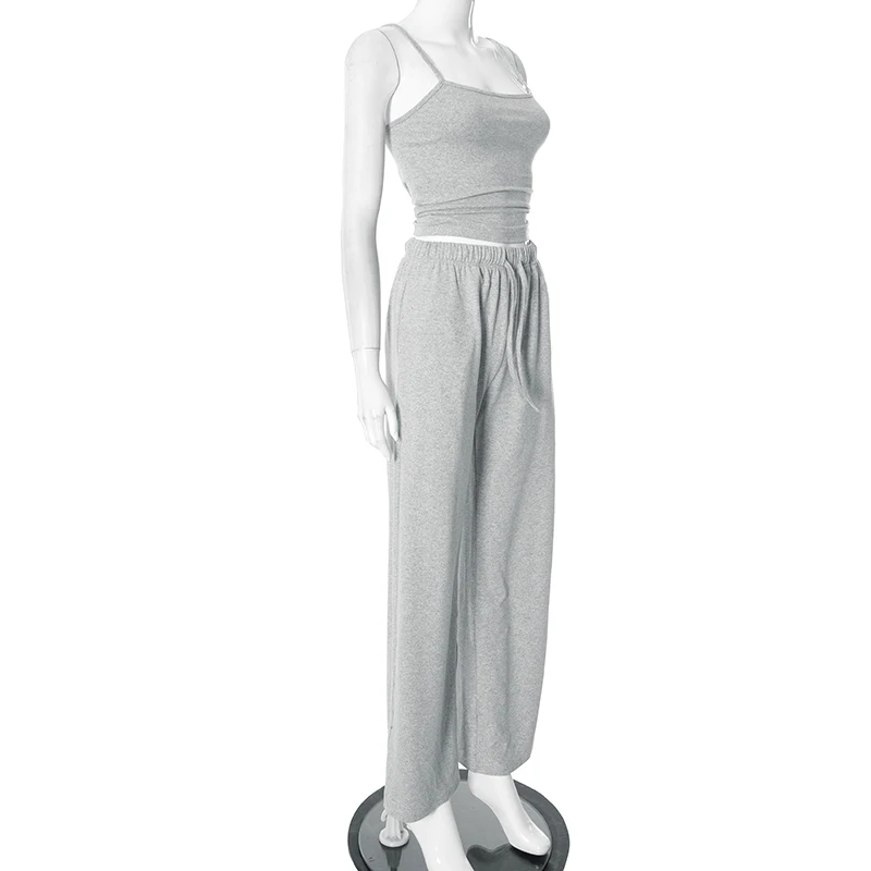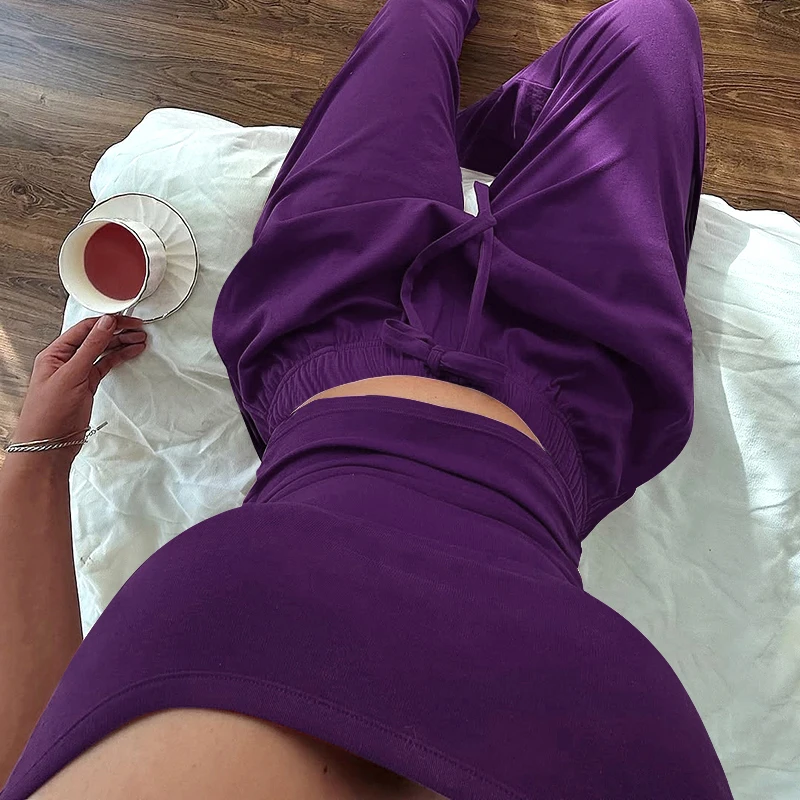 Loose Drawstring Pants Casual Sporty Two Piece Set