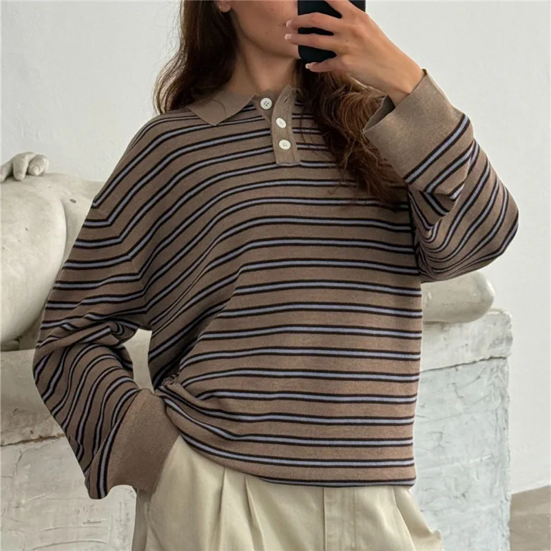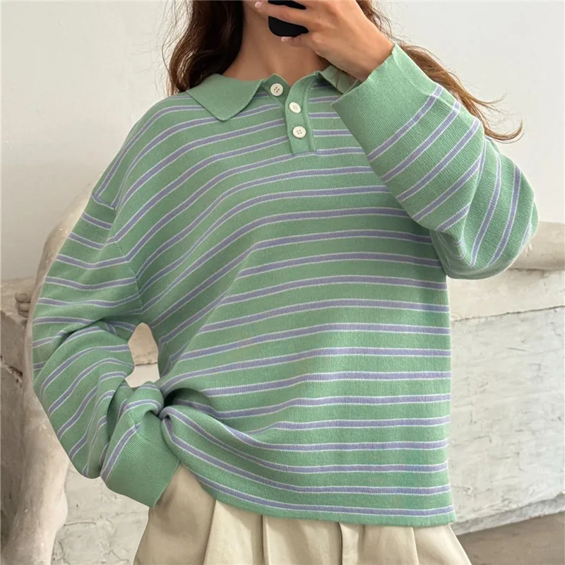 Oversized Striped Collared Long Sleeve Sweater