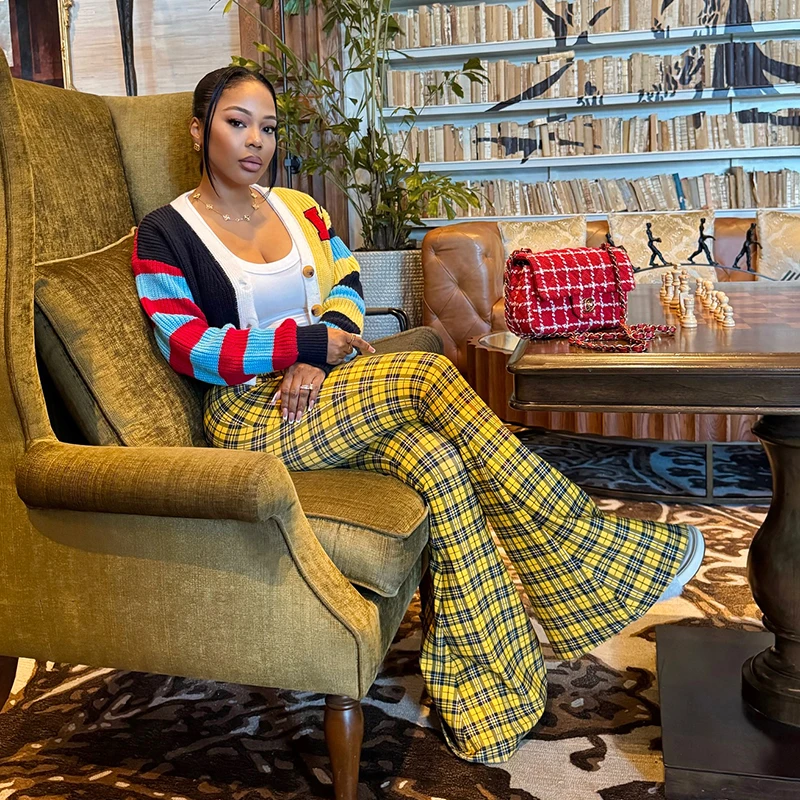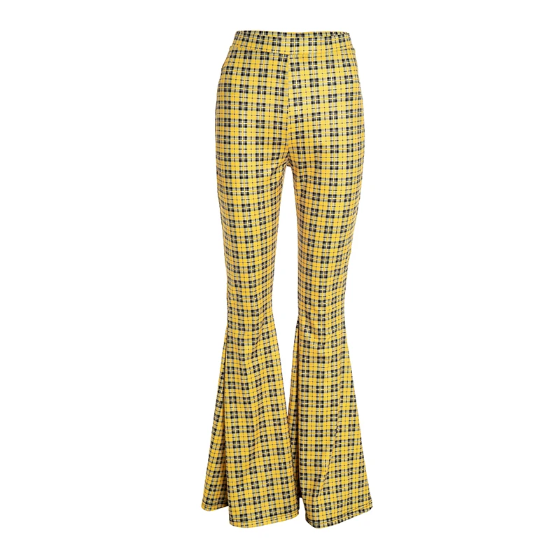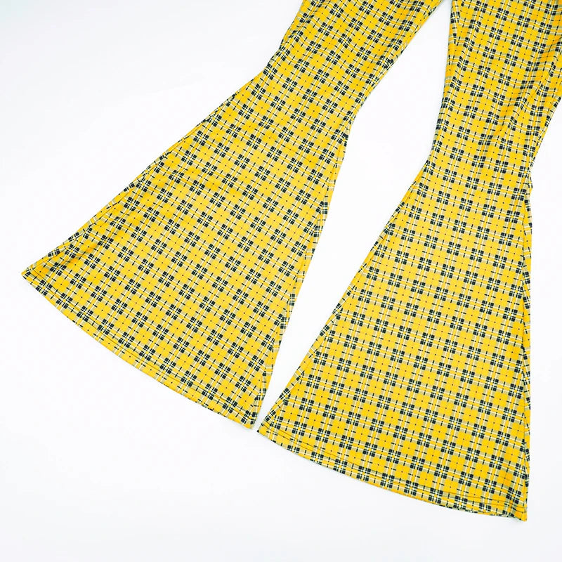 Plaid Print Casual Flared Pants