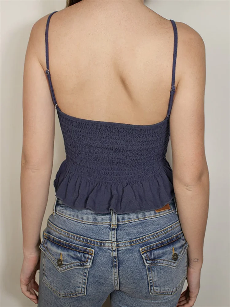 Women Camisoles Solid Color Ruffles Hem Casual Tank Tops Summer Fashion Sleeveless Tops Streetwear