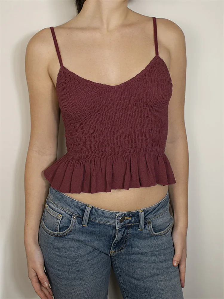 CHRONSTYLE Women Camisoles Tops Solid Color Ruffles Hem Slim Fit Casual Tank Tops Summer Sleeveless Strap Mini Vests Streetwear