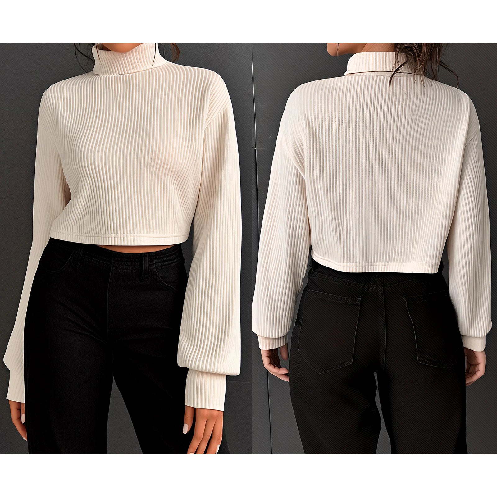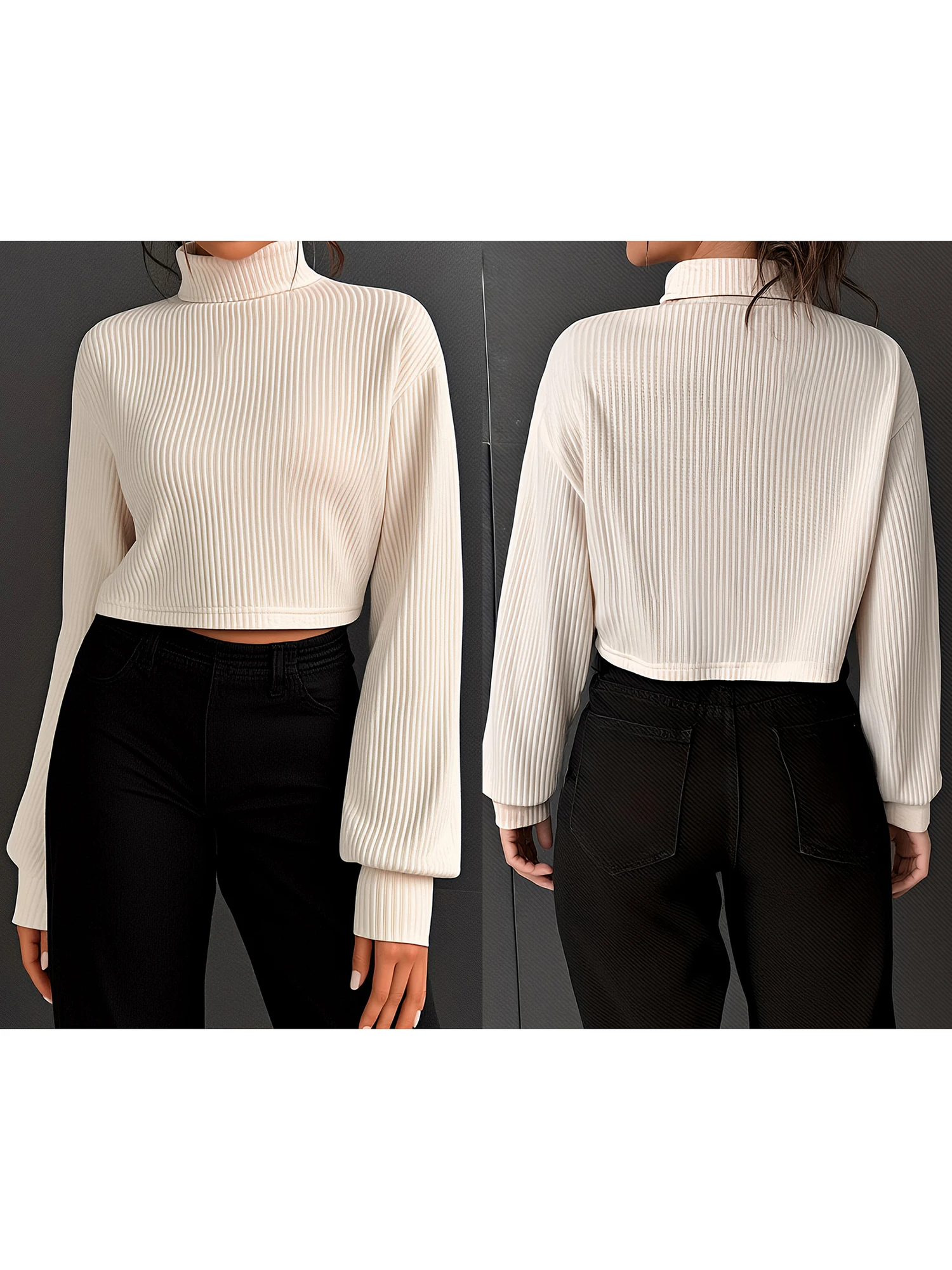 Women's Semi Turtleneck Pullover Solid Color Long Sleeve Knit Sweater for Autumn Winter Daily Office Wear