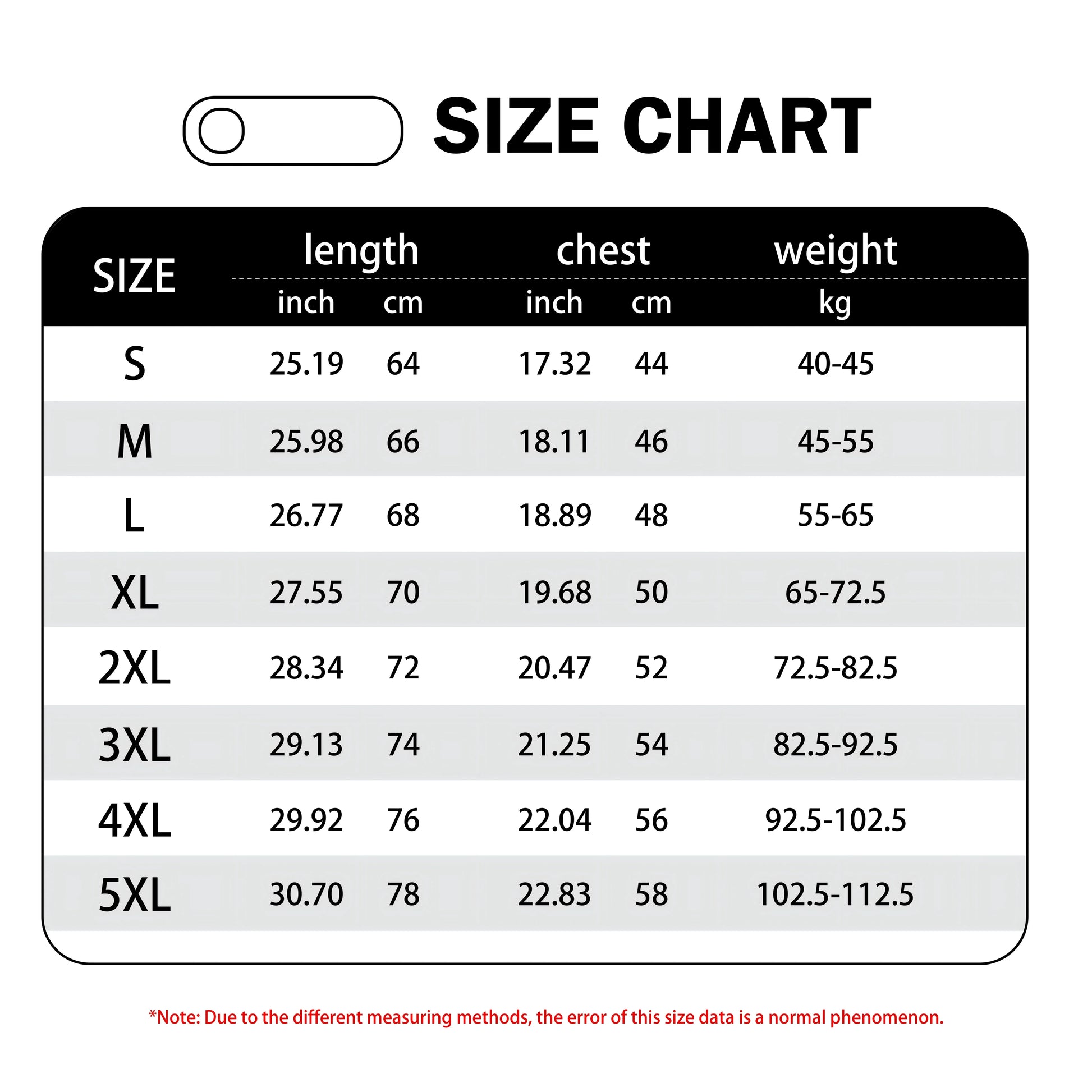 [Special Note] This size data is measured under the clothing tile, tile measurement chest circumference is 1/2, due to different measurement methods, error within 2-4cm is a normal phenomenon