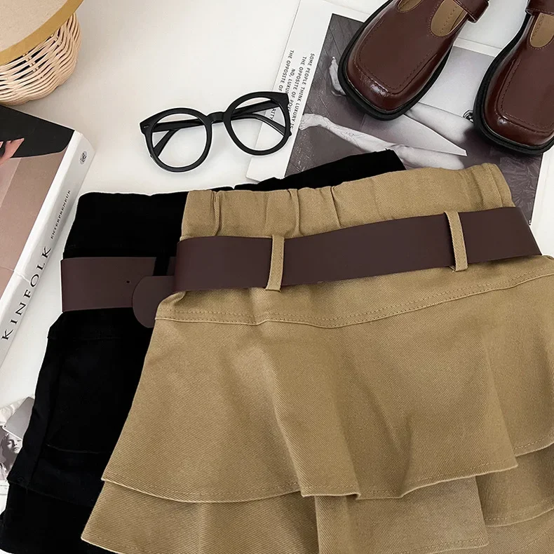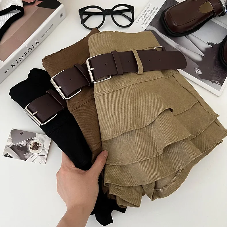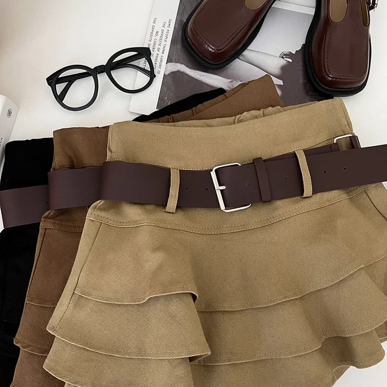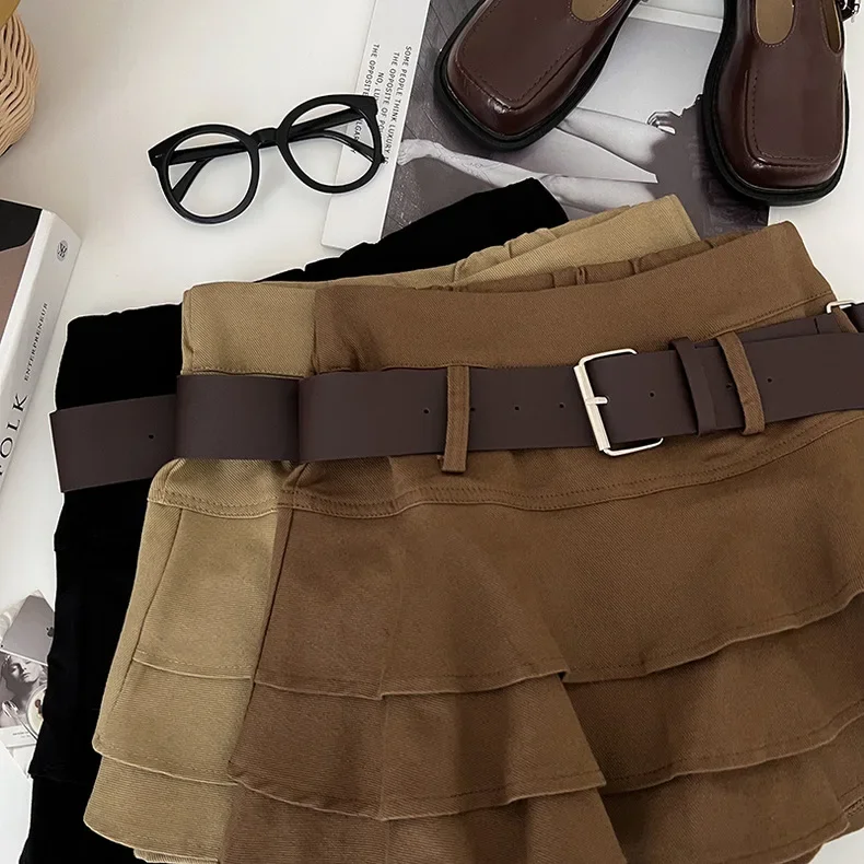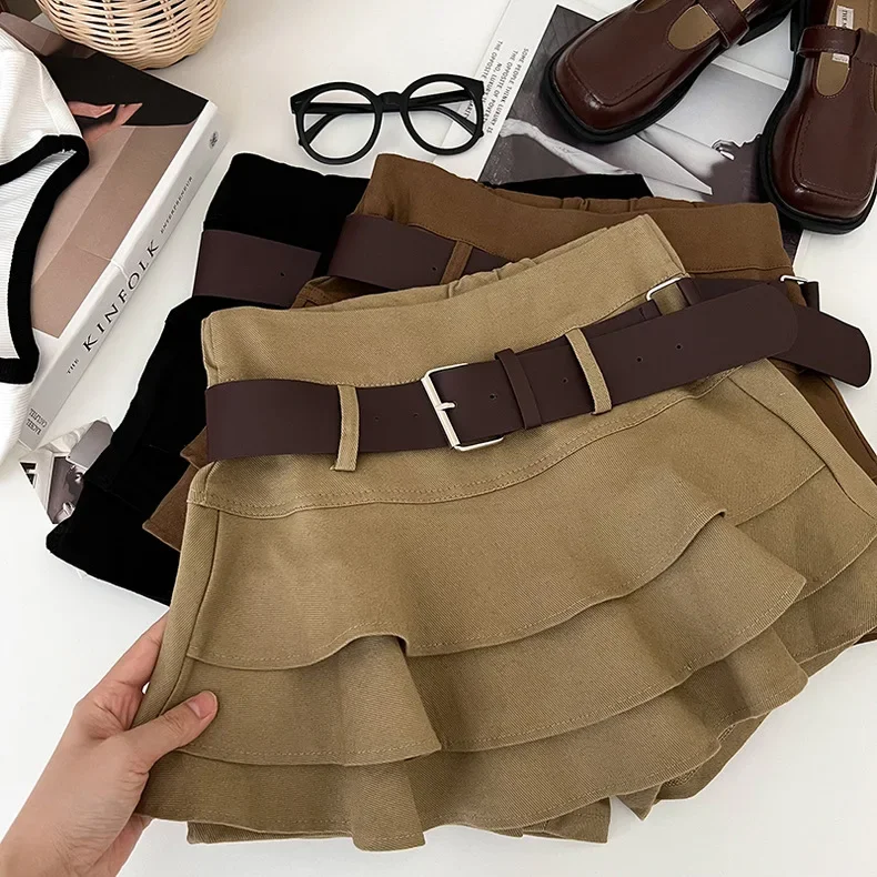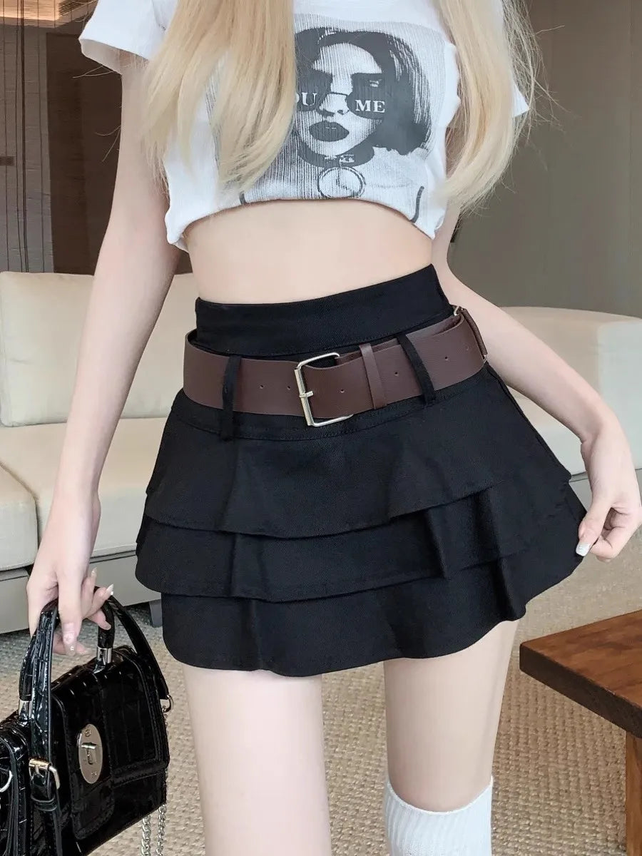 Tiered Ruffle Mini Skirt with Belt