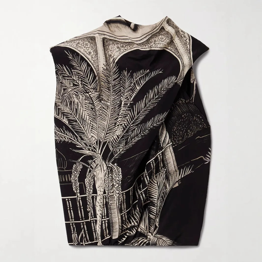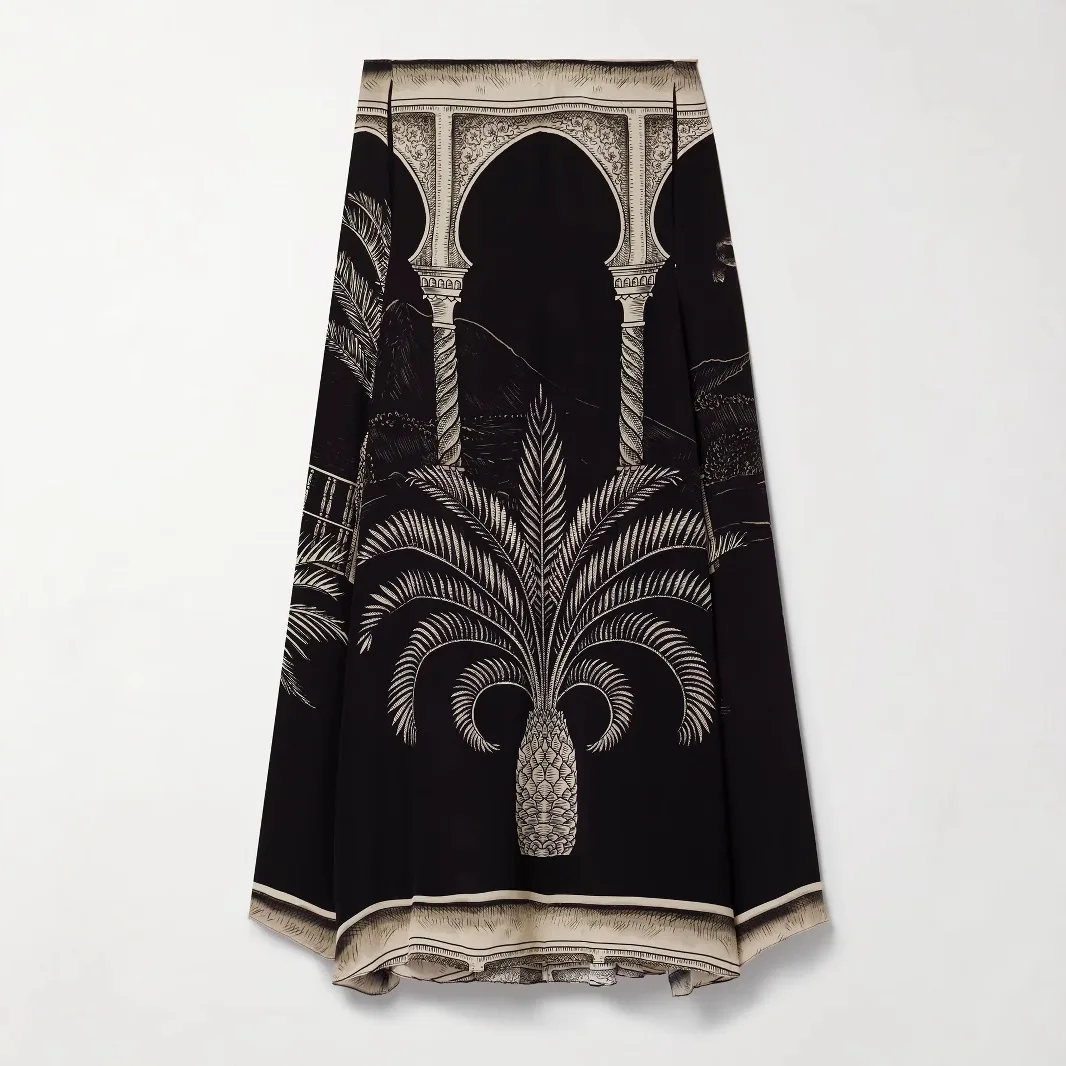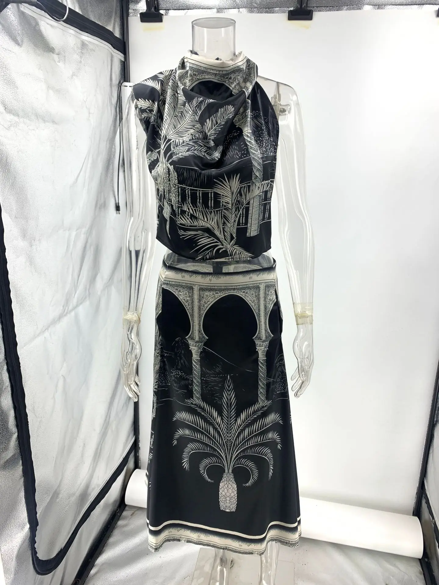 Vintage Print Satin Skirt Two Piece Set